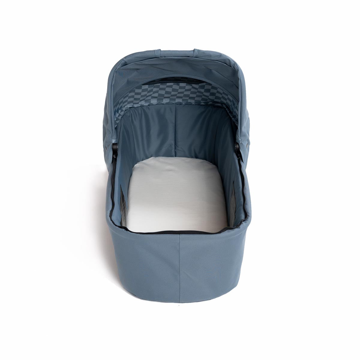 The Bassinet is compatible with the Era, Indie (2016-2022) and Speed prams. It is made with OEKO-TEX certified 100% recycled polyester fabric, a vented wood base board and breathable polyester honeycomb mattress.